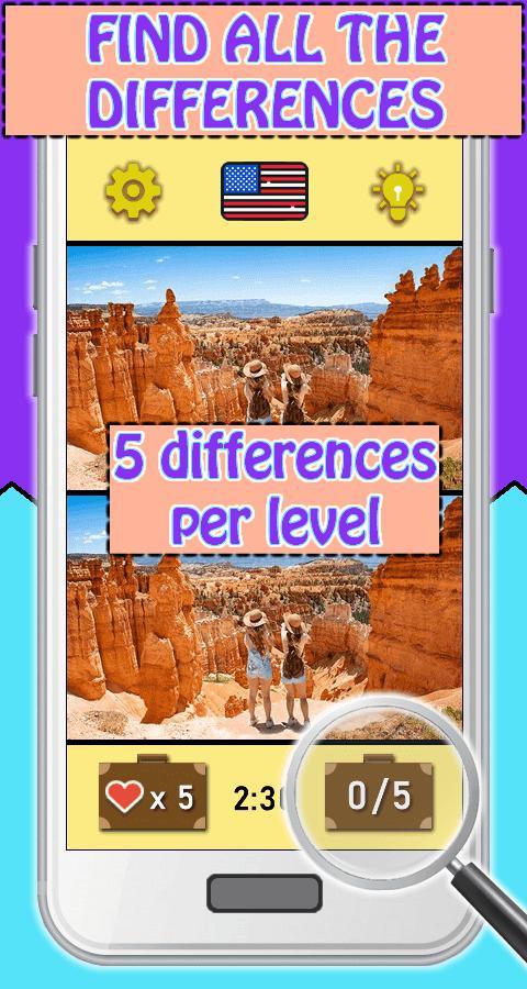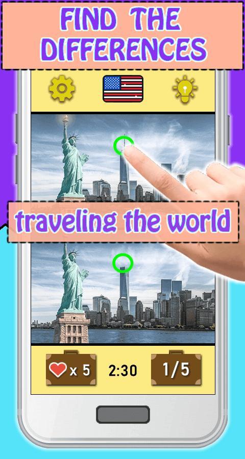环游世界,同时找出它们之间的不同。在享受这个经典益智游戏的同时,提高您的注意力,观察技巧。