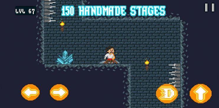 像素的画风,玩家在开始的时候可以控制着你的角色在关卡里面滑行起来。