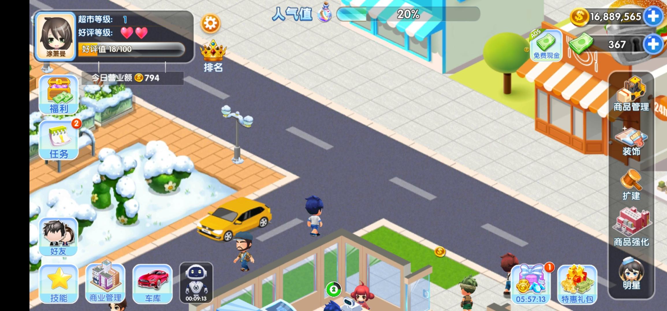 每个人都有经营一家超市的梦想吧,但是真的经营起来也不是那么简单的,在我的模拟超市破解版无限钞票版这款游戏中,玩家就可以实现经营超市的愿望,您需要从进货开始管理商品,设置热卖的商品让更多的顾客看到,提升超市的好评等级,雇佣明星来代言让客流量提高;