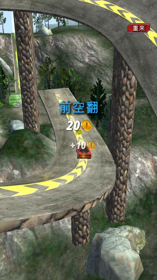 每个闯关的过程中,会拥有着不同的机关与道具来使用,踩下油门我们一往无前,一路莽上弹簧机关上去。