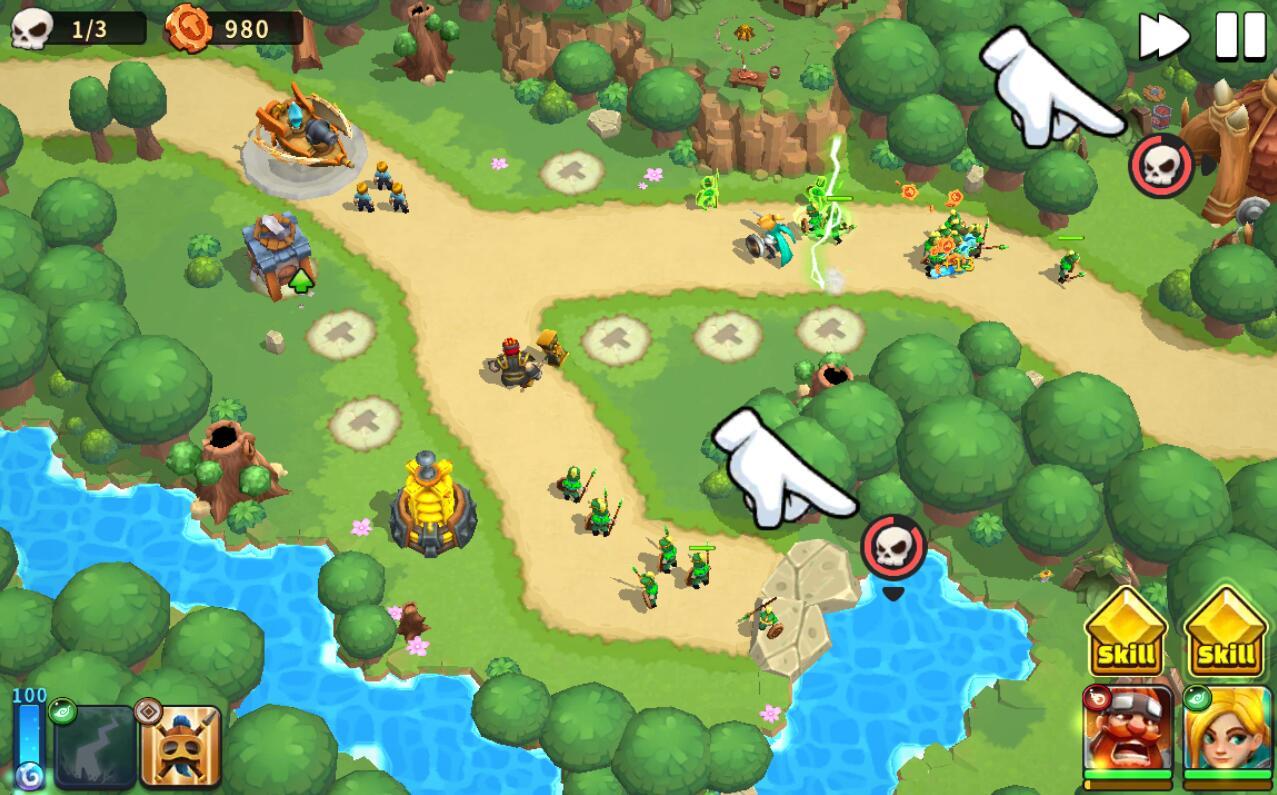 玩家将会与众多英雄一起并肩作战,利用建造起来的一座座炮塔,成功的抵御魔族的入侵,守护,是永恒的主题;