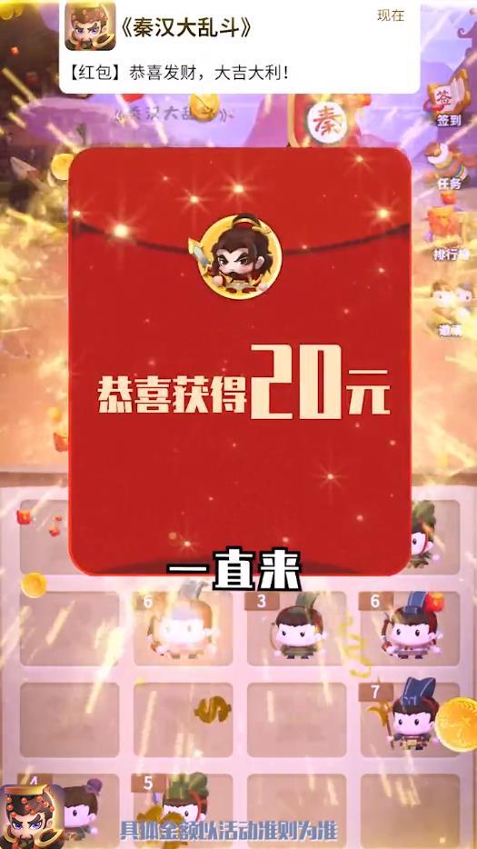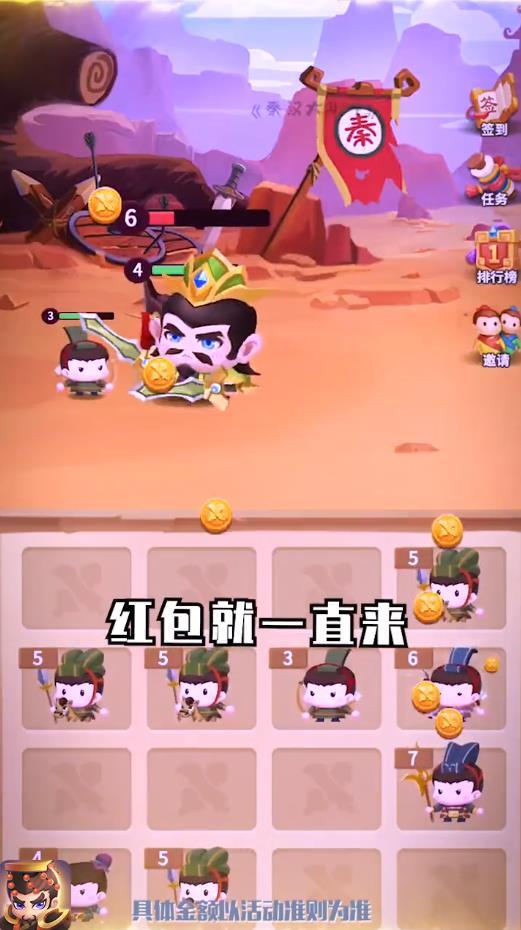 秦汉大乱斗是以秦汉乱世为游戏背景,让你拥有着感同身受般的战争体验,以合成的方式进行更高等级的小兵的解锁,进行非常精彩的对战玩法,还可以进行红包的赚钱,还可以以分享推广的方式进行现金红包的不断获得,一键即可进行红包的提现。