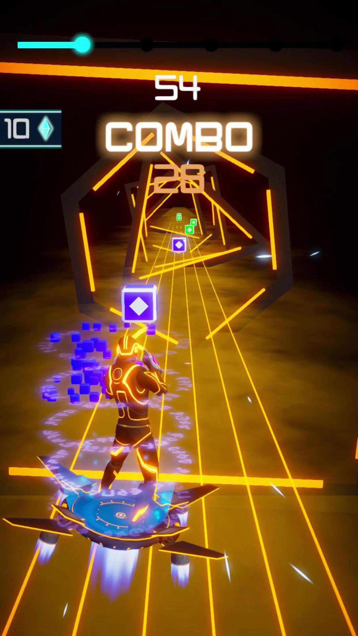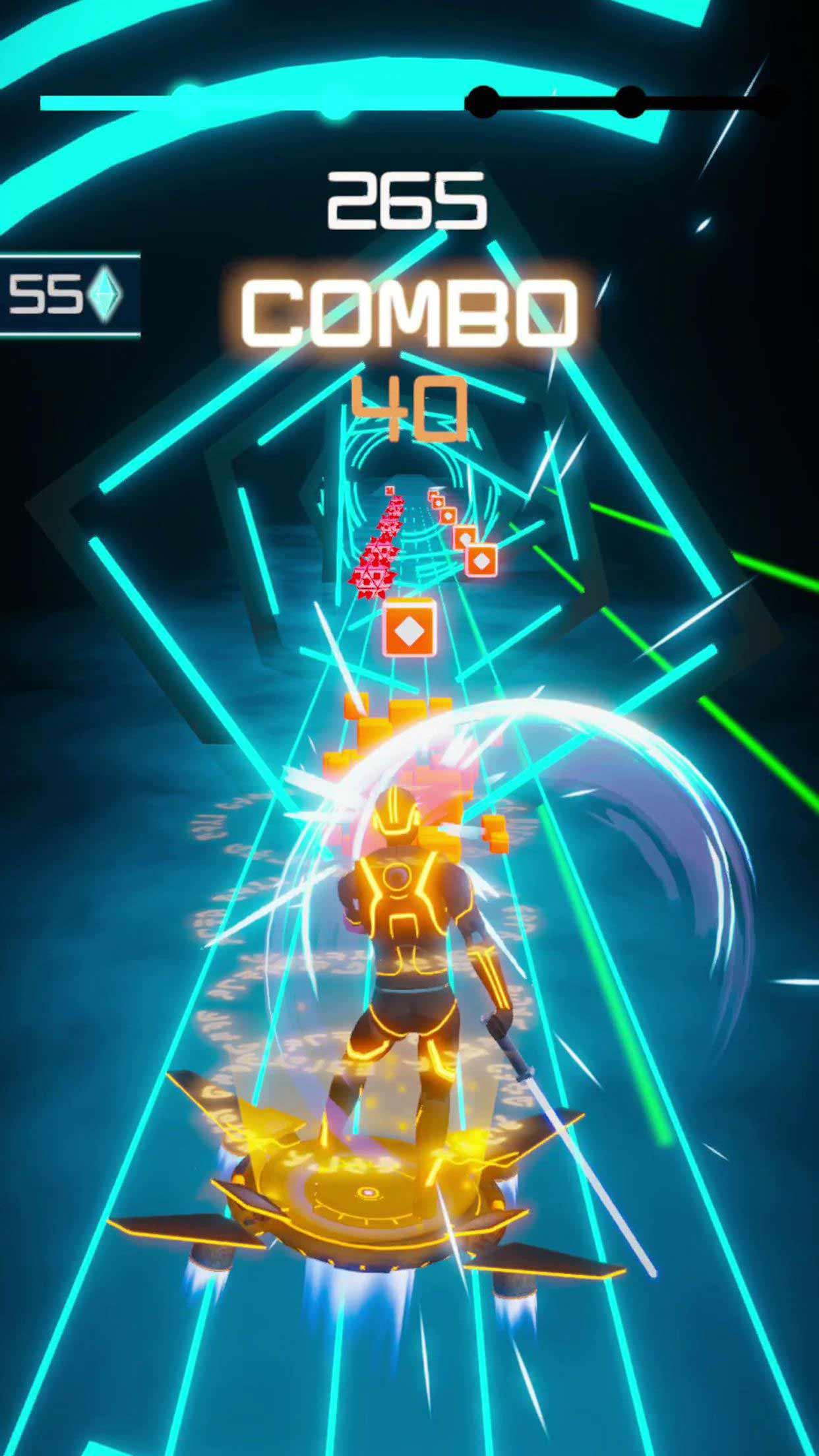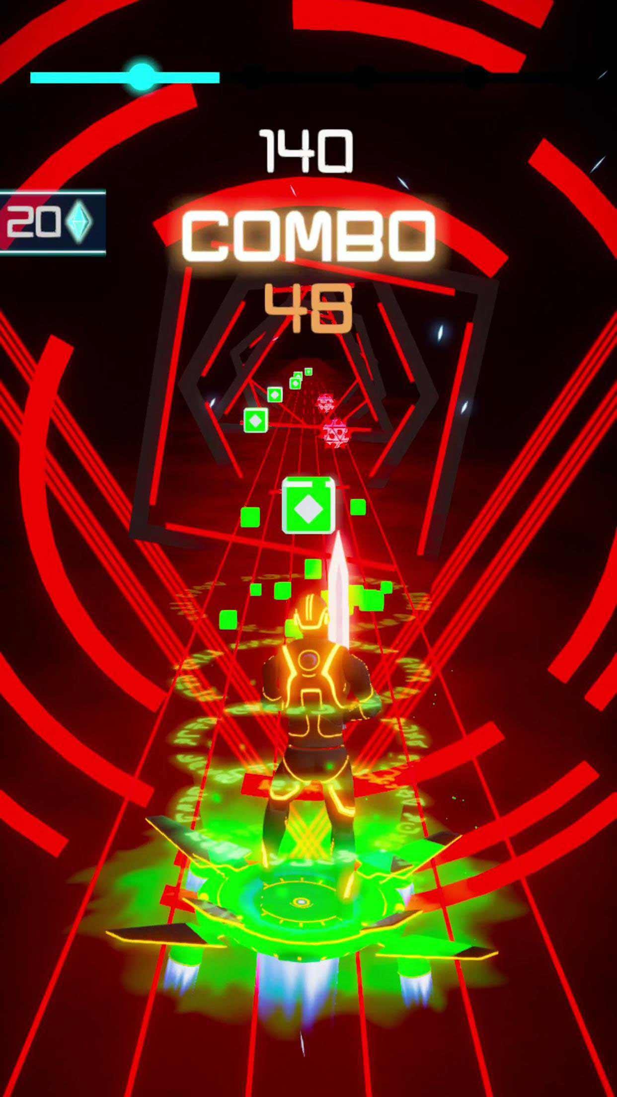 1、操作简单,点击屏幕,快速的划动,就能释放光剑,准确的砍向音符。