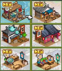 游戏中的城市主要分为三类:提升周围建筑收入的环境类建筑、获得收益和点数的生活类建筑和设施类建筑,其中比较特殊的有建成后能够招募市民的住宅(也属于环境类)和建成后能获得大量收益且数量有限的建筑“官署”。