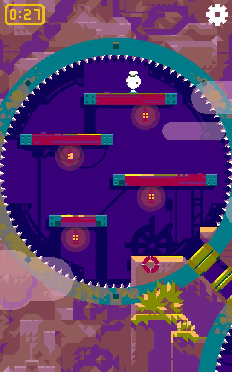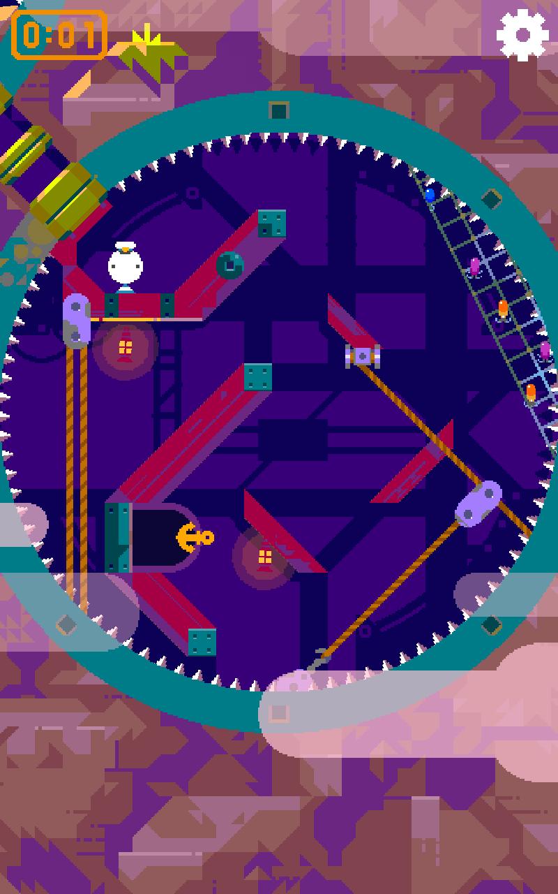 3、游戏中的每一个场景都在一个圆中,在灯塔中前行的小男孩,一路上会遇到各种各样的机关,比如尖刺、锯子、守卫等等,如果玩家在转动场景时用力过度或者用力不足的话,角色就会比较容易碰到这些陷阱,从而要重头来过,甚至一个不小心就可能跌落摔死。