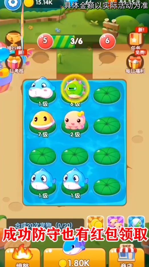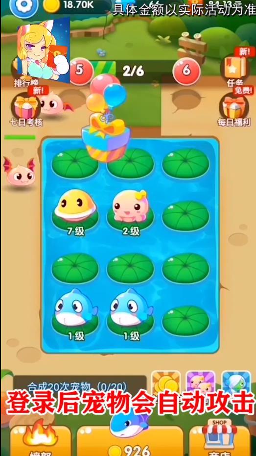 疯狂打怪物冒险版让你感受非常精彩的自动战斗玩法,游戏是以宠物为主,以合成的方式不断进行宠物,从而更好的增加宠物的攻击力,进行与怪兽的对抗,每解锁一个全新等级的宠物或是守护成功,都可以获得红包奖励。