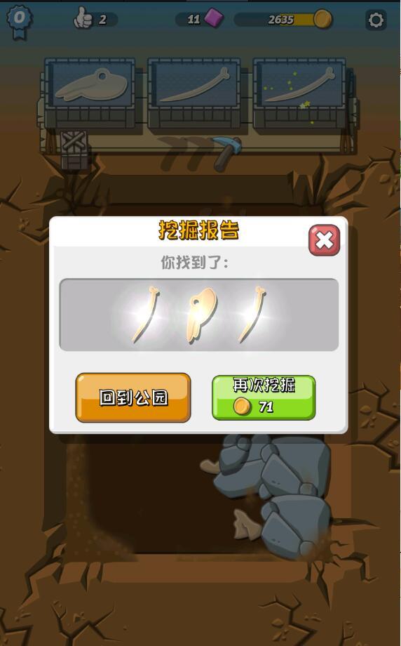 现在有一个尚未开发恐龙公园将交给你经营,你可以在挖掘场所挖掘恐龙化石,并通过科技将化石还原其形态;