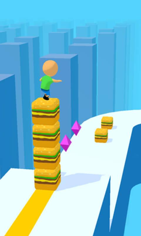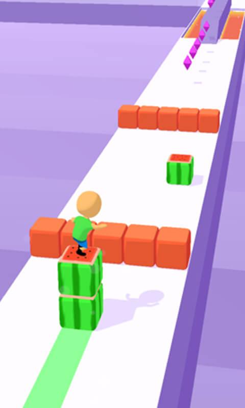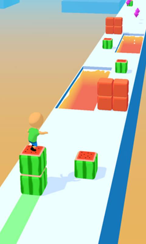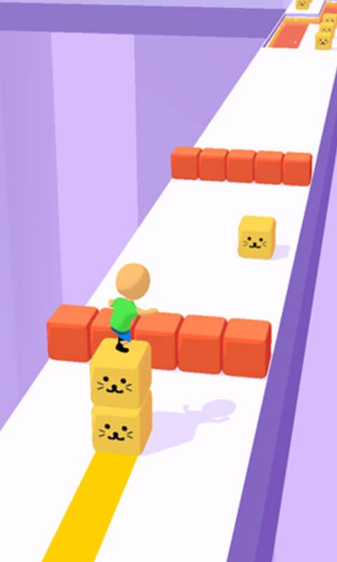 2、游戏中的玩法和叠叠乐差不多,就是需要玩家收集方块叠高自己,以方便自己可以跨过更高的建筑物,或者过陷阱的时候可以用这些方块来垫脚