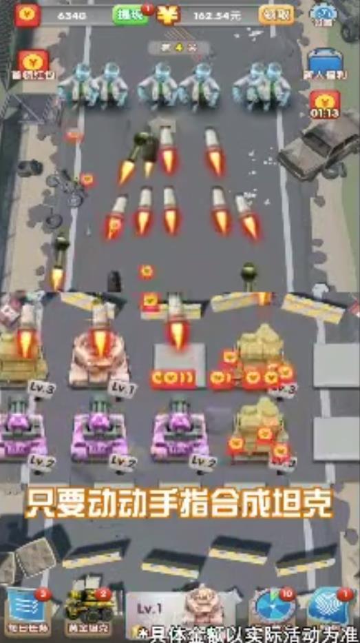 轰你一炮让你以合成射击的方式,消灭僵尸就可以闯关成功,通过不断的合成升级,让你炮台的杀伤力不断提高,才能够与更加强大的僵尸进行对战,只需要拖动相同等级的炮台,就可以进行炮台的合成操作,轻松就可以上手,进行零花钱的赚取。