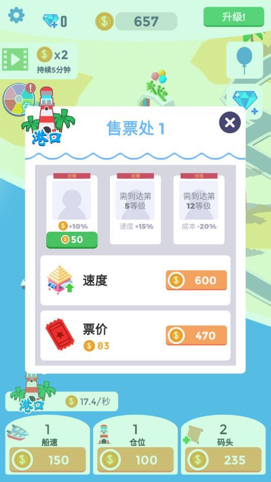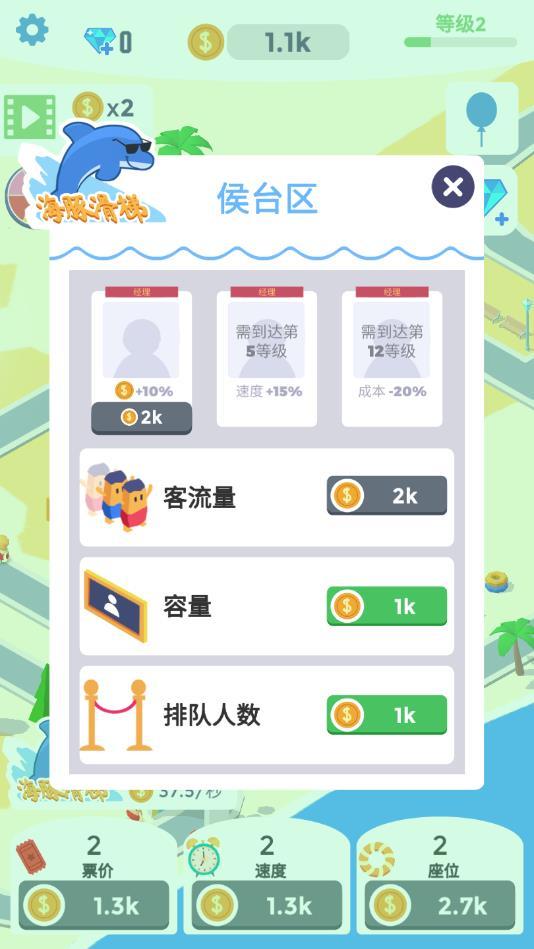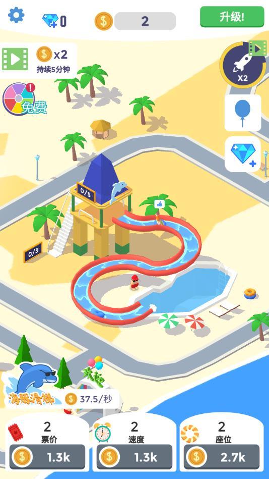 浪里个浪水上乐园让你可以轻松水上乐园的模拟建造,非常卡通可爱的游戏风格,不断进行速度、座位、票价、船速的提升,从而让你的设备更加完善,运营速度更快,才能够获得更多的金币,进行更快快速的多方面的升级。
