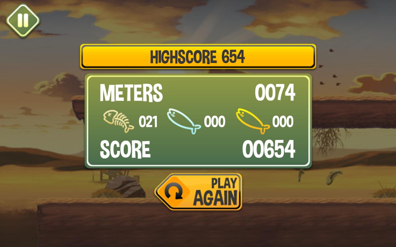 操作方面是很简单易懂的触屏,按触屏幕就能控制Tappy进行跳跃,再按触第二次则是进行二段跳(没有三段跳)。游戏的目的就是尽量的去获得各种水果、跳过各种障碍、躲过各种怪物和避开山猫爵士。要注意掉下平台和碰到山猫爵士都是会直接GAME OVER的,碰到怪物则不会,但是会根据当前的最大分数来按比例扣除。
