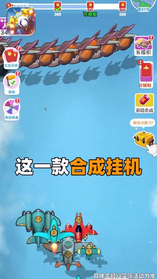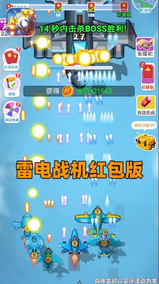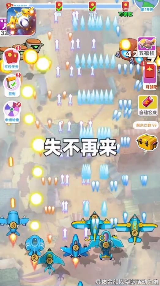 可以在闯关过程中解锁更多的战机,闯关还可以获取真实红包奖励。