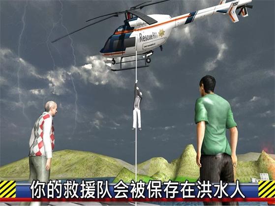 4、化身救援人员对各个受灾区域实施救援计划,游戏中玩家是利用直升机来完成救援行动的。