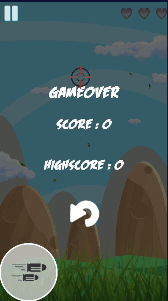 游戏中玩家有三次机会,如果你三次没有射中小鸟那游戏就要重新开始;
