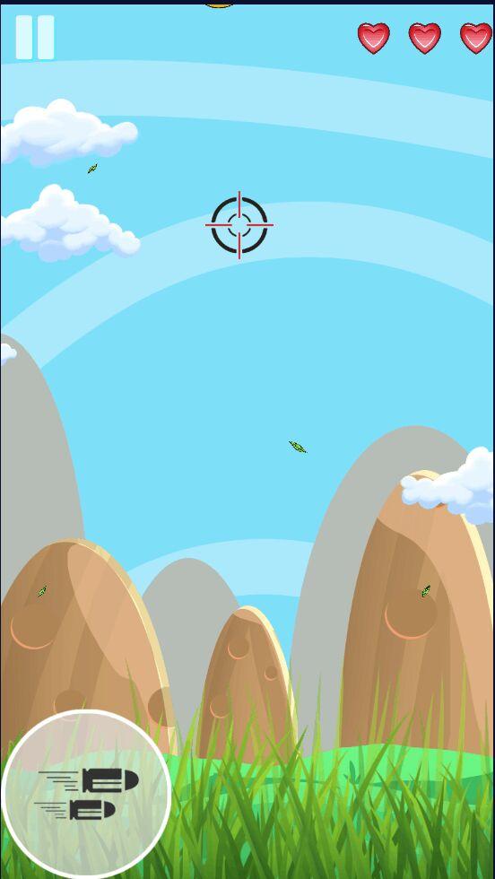 可以看到在上方有一个瞄准的标志,当小鸟飞到那个地方时玩家就开始射击;