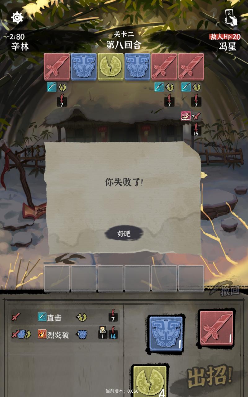 3、你可以选择攻击、格挡、闪避、冲击等等招式,不同招式所获得的属性和动作是不同的!