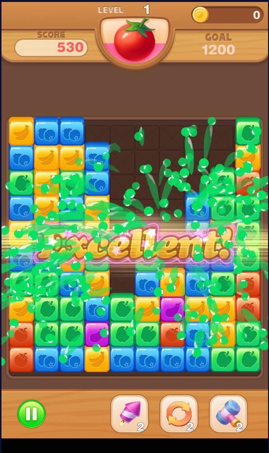 水果消除然后特效爆炸的时候看着非常的流畅,也非常的舒服;