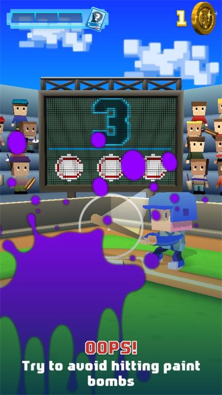 2、在快速好玩的竞赛游戏中打出曲线球和快速球,躲避油漆弹。尽情打球。