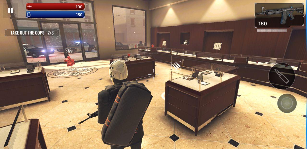 想要体验抢劫银行的感觉吗?来玩这款武装掠夺无敌版游戏,你就能成为令警方头疼的大盗。游戏的玩法也比较简单,玩家的任务就是完成各种犯罪并成功的逃离现场,一旦被警察击毙,游戏就会失败。成功完成任务即可获得金币奖励并用来兑换各种类型的枪支武器,获取更加丰富的射击体验。赶紧下载游戏,体验不一样的射击玩法吧。