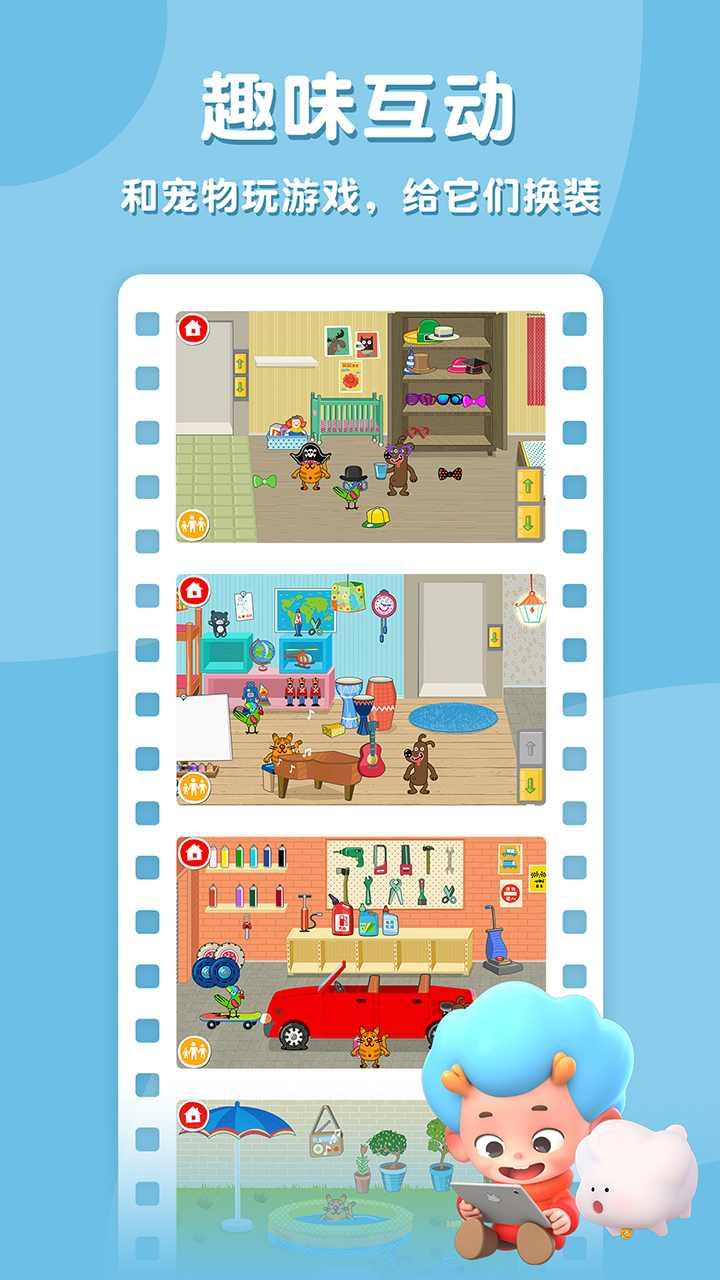 尽情探索房屋,了解修理家用车,洗衣服,打扮宠物,家里还有很多事情等孩子们去完成。
