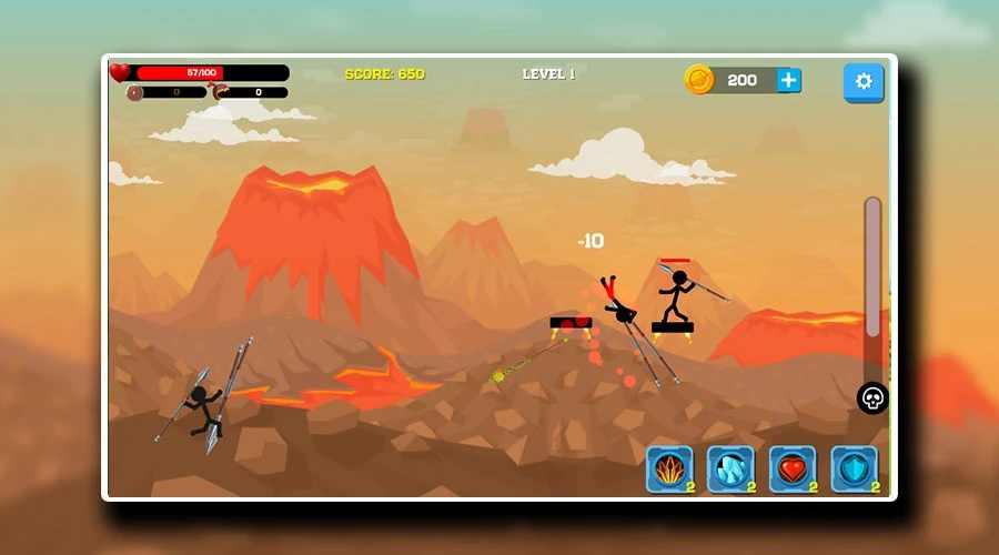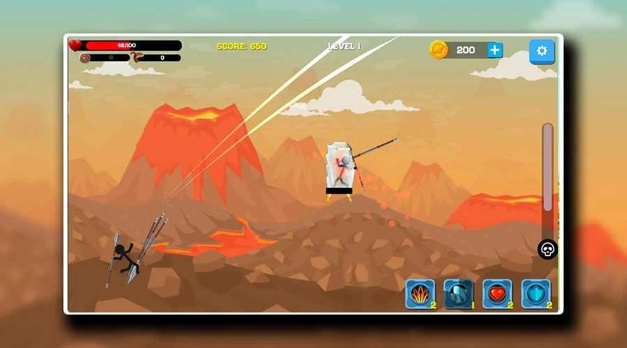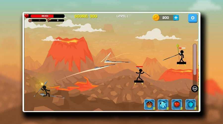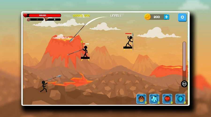 1.游戏中你将控制火柴人使用各种长矛消灭游戏关卡中的敌人