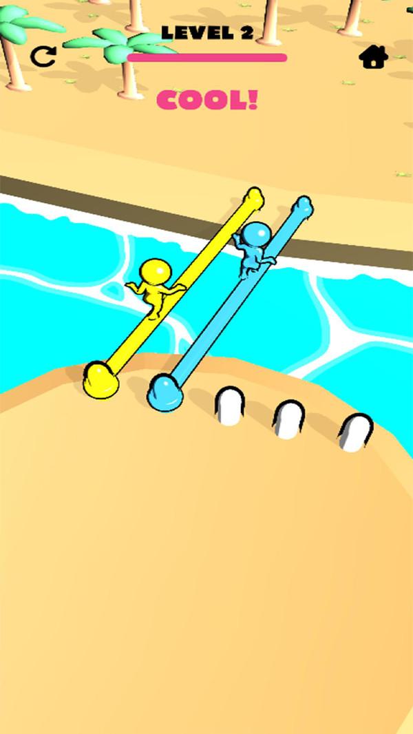 2、画面的设定非常的清新亮丽,在游戏中你需要在每一个关卡挑战中去解开绳索,拯救被困的人员。
