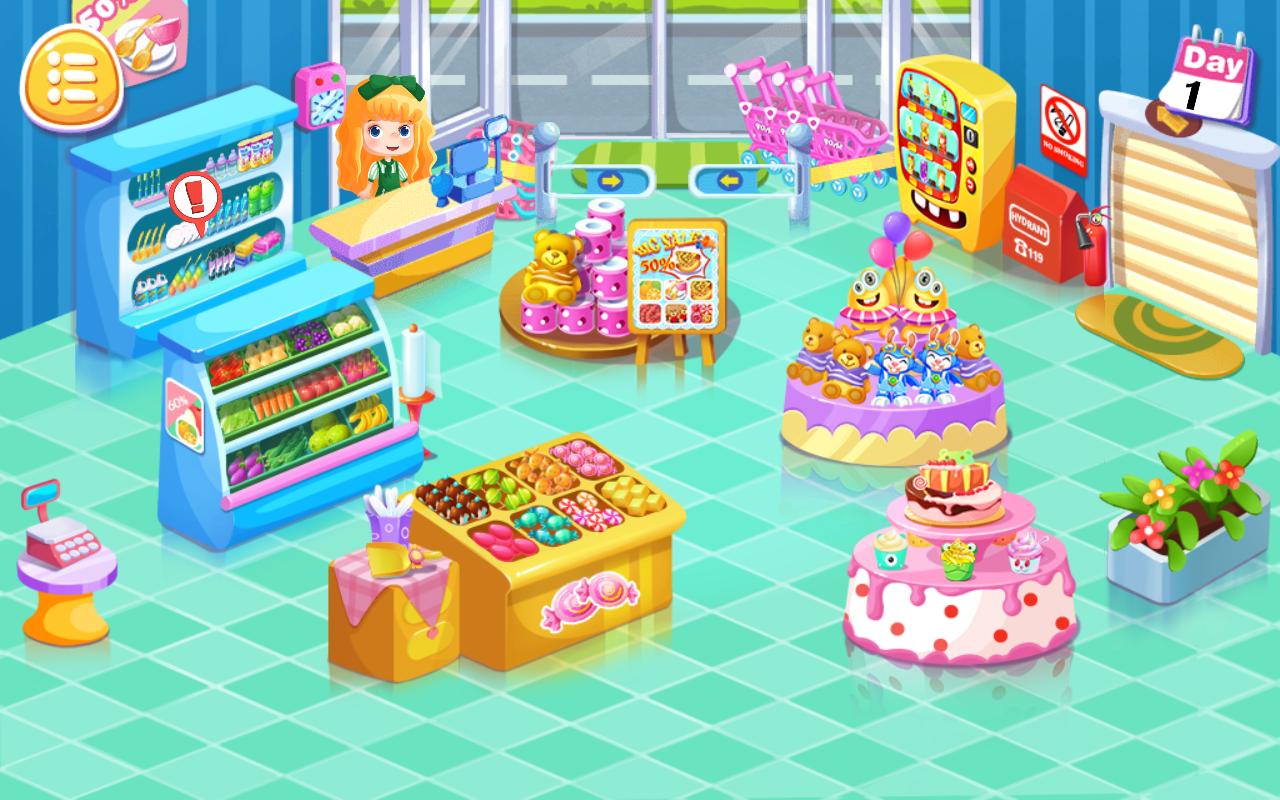 成熟的绘图风格,整体效果依旧细致精美。不仅有可爱的卡通风格人物造型,流畅的2d图象效果看上去十分细腻。整体色彩运用的清新不失华丽,还有多重的剧情动漫可以欣赏。音乐效果节奏明快,配合着动感的背景乐节拍,以及带有提示效果的生动音效,表现欢快的超市氛围。