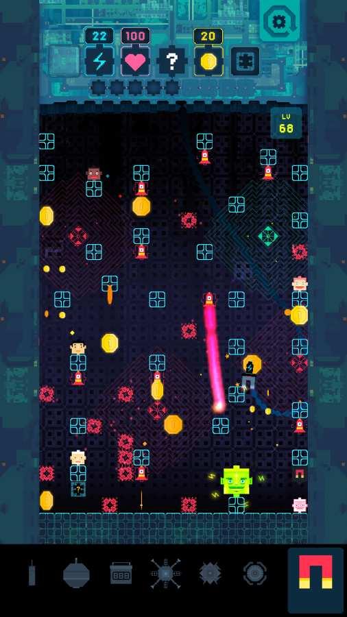 战略性地使用8种不同类型的炸弹,以清除道路并避免被上升的障碍物淹没;
