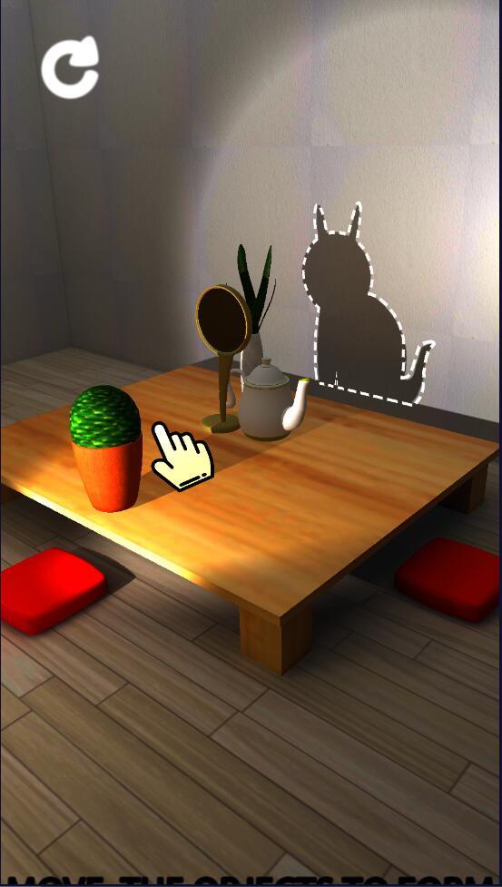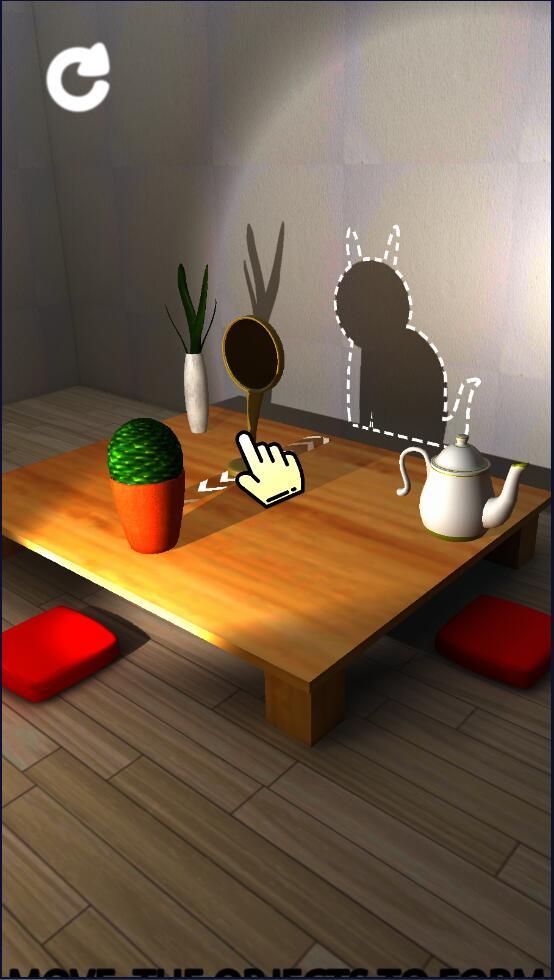 影子制造者,进入游戏玩家就可以看到有光线洒在桌子上,桌子上有不同的物品,桌子后面是一堵墙,阳光和物品在墙上形成阴影,玩家通过移动物品的方向和远近来让墙上的影子成型,玩家是可以通过改变让影子成为不同的小动物的。