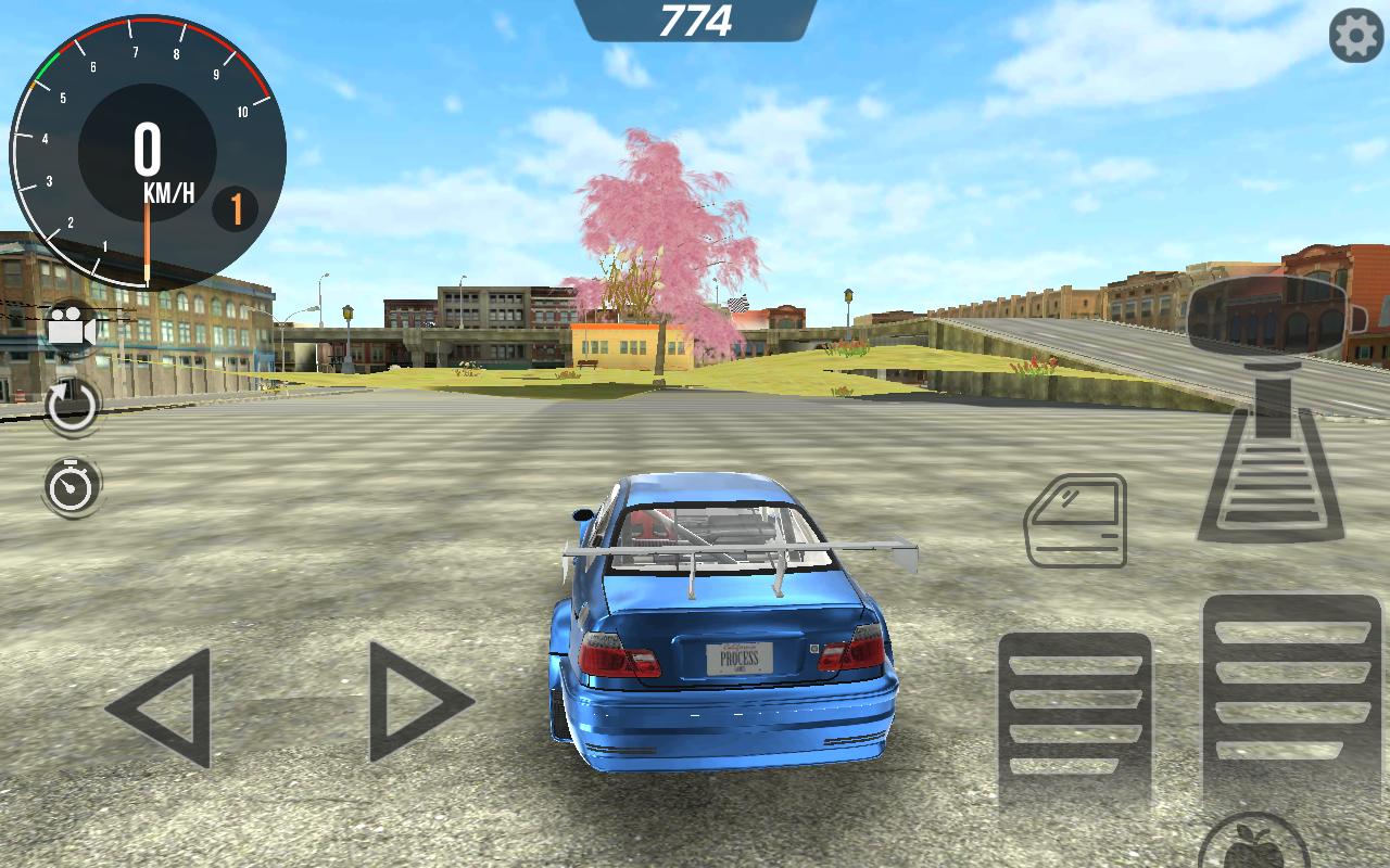 4、点击左下方的按钮控制紧急刹车,配合方向和速度可以漂移;