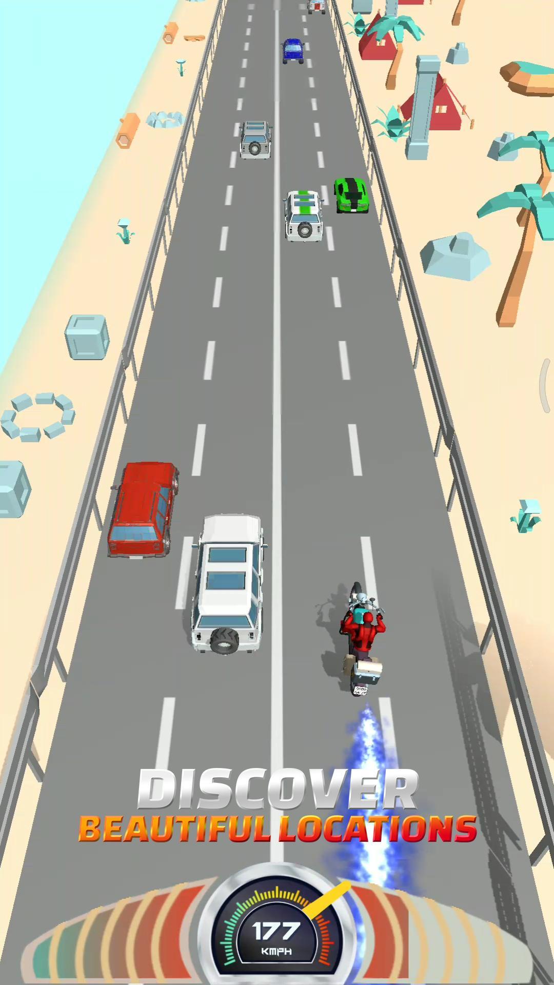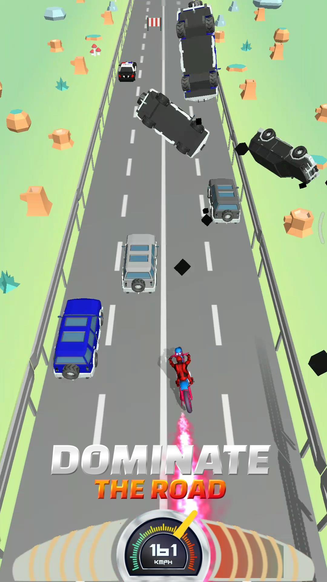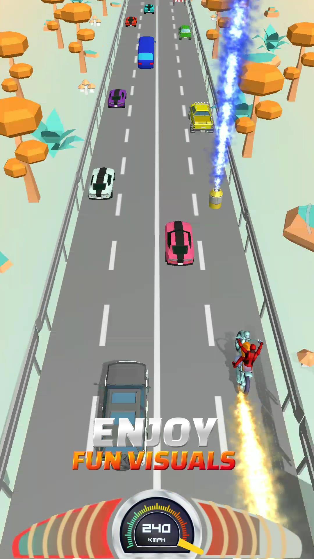 卡通自行车赛车是一款非常简单好玩的摩托车赛车类游戏,在这款游戏中你将能够驾驶着你的摩托车在城市的街道上进行驾驶,在行驶的过程中你将会遇到很多的的其他的车辆,直接开足你的马力怼过去就完事了,你能够非常轻松的闯过这片马路,城市中的所有车辆都将被你撞毁,现在就来下载游戏体验这种快感吧。