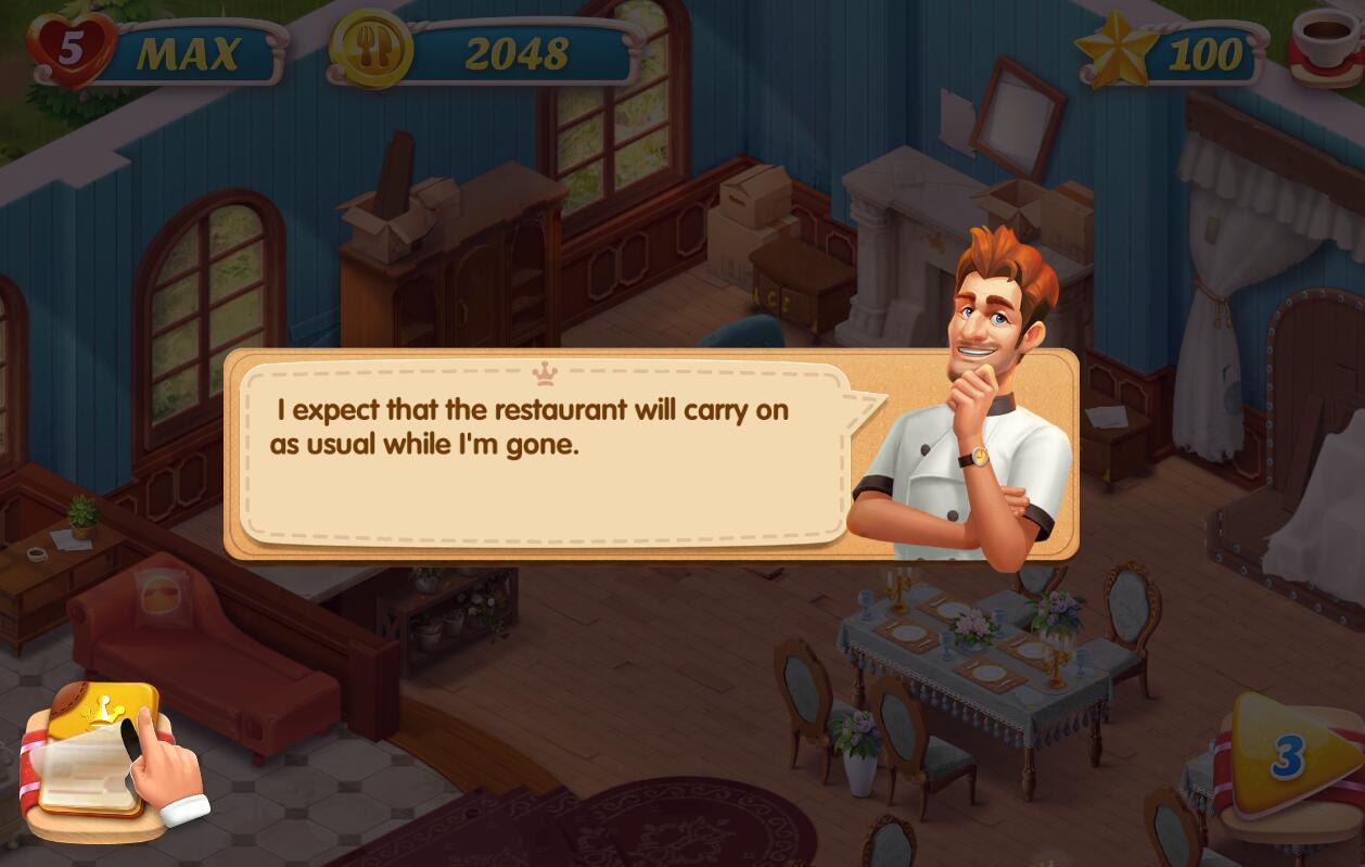 以欧美卡通风格向玩家展示了一个餐厅的复苏计划,并随着玩家的慢慢经营变得更加的壮大。