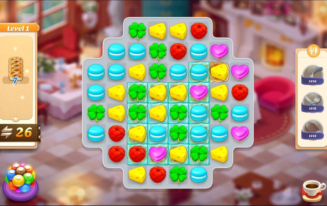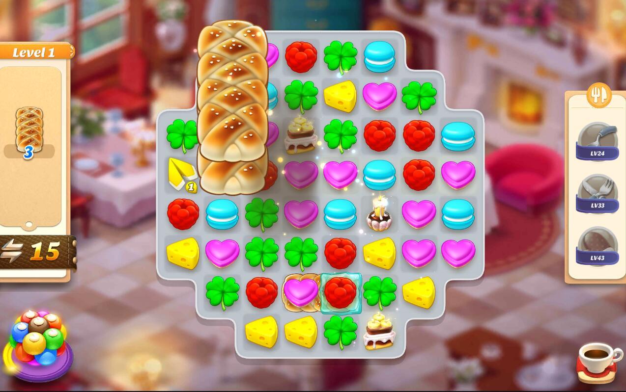 将餐厅经营玩法和消除玩法相结合的,我们需要在消除关卡中来获得资源;