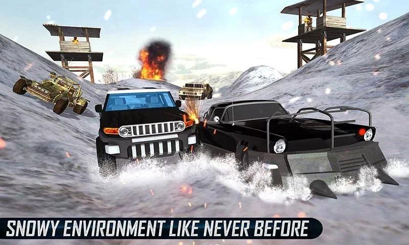 3、一场刺激的驾驶战斗的游戏体验,感受在这个雪地之中进行刺激的战斗;
