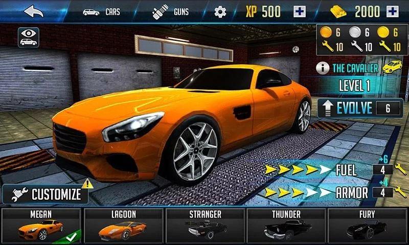1、还可以自己购买心仪的车辆,然后对它进行改装,忘上面撞上威力巨大的武器,大护杠,机关枪,火箭弹等等武器绝对给你刺激的游戏体验
