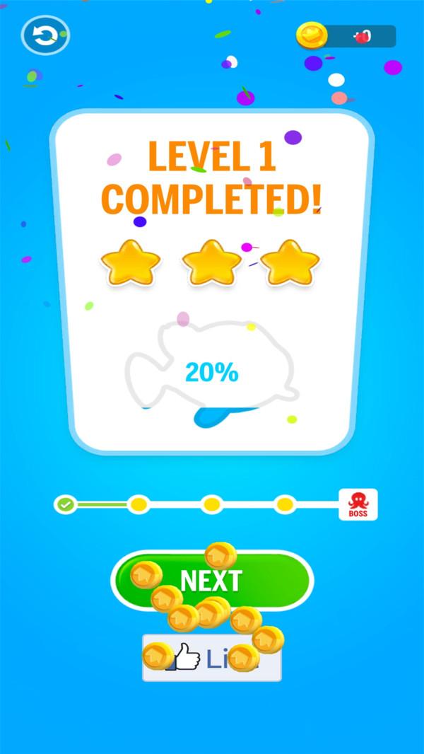 2、难度不一,控制并且操作别针的抽取时机,安全的让鱼儿逃离,获得更多欢呼;