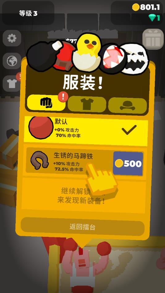 肉肉的铁拳让你感受非常简洁的动作类格斗游戏体验,指尖点击即可控制角色的出拳,不断与不同的对手进行对战,感受非常有趣且超具打击感的拳击战斗,支持进行攻击力、生命值、暴击率等属性的提升,让你的战斗力更强。