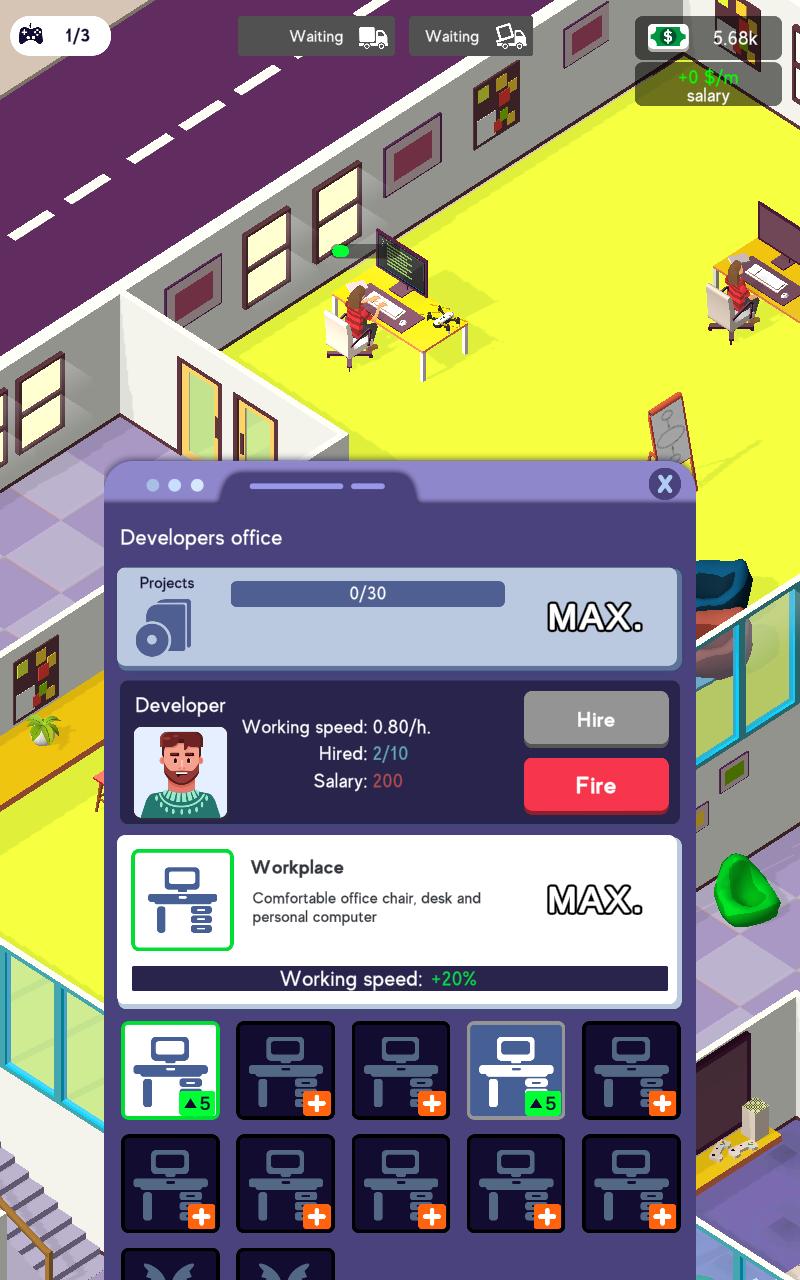 玩家需要不断升级各种设施,扩大自己公司的地盘,招募更多的员工,成功收获最多的金钱,完成更多的任务。