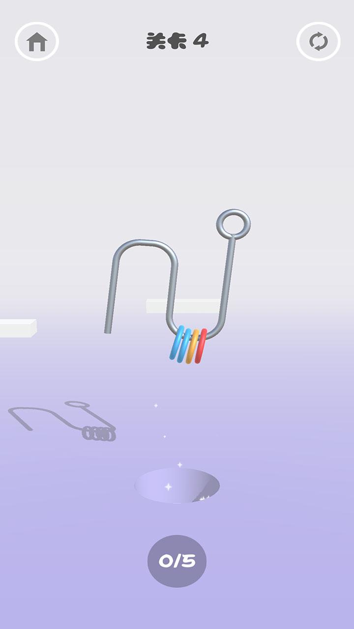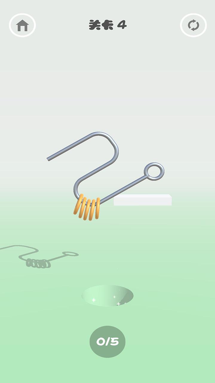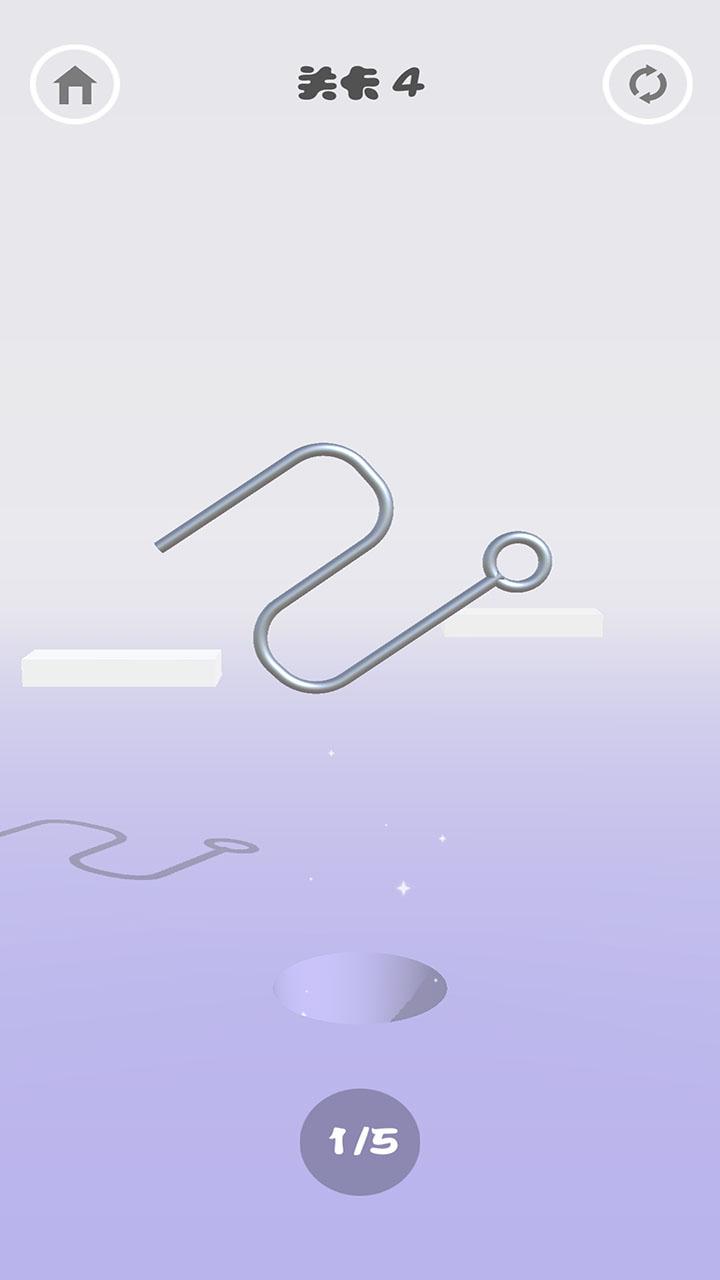 连环套是一种非常经典的游戏玩法,在这款游戏中你需要使用一个奇形怪状的铁丝来完成将所有的环套进去的操作,这听上去还是很简单的,但是实际操作起来却面临着许多的困难,你需要思考的内容有很多,每一个环的使用都是非常有讲究的,如果使用不当你就没有办法完成关卡,不过关卡的难度曲线还是可以的,你能够很快适应这款游戏的玩法。