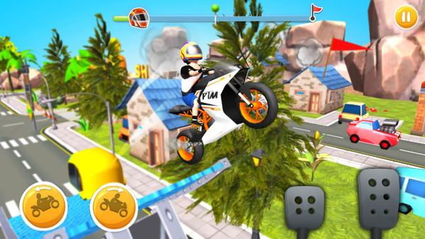 卡通自行车赛是一款超好玩的赛车竞速冒险游戏,这款游戏的画面卡通,场景精美,玩家要操作好自行车在惊险的赛道前进,表演各种特技到达安全到达终点,每个关卡都有不一样的地图场景等待您来欣赏,各种赛车皮肤等待您前来解锁体验;