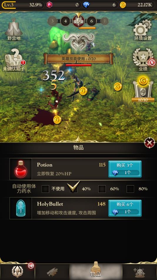 支持进行防御、回血工具的购买,点击即可进行防御以及回血操作,让你的英雄可以更加精彩有趣的进行持续的战斗操作。