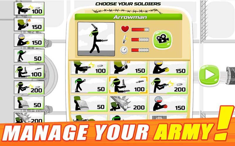 3、有数百种不同类型的火柴人可以选择,包括现代科幻和复古武器。