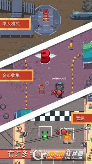 像素漂移氮气加速手机版下载(Pixel Drifters Nitro)是一款像素风格的赛车竞速类手游,在游戏中你可以选择你的赛车在不同的赛道上进行比赛,和其他的车手一较高下,完成各种复杂的漂移挑战,收集更多的金币,甩开追踪你的警察,还有多人模式可以和其他玩家一起游戏。