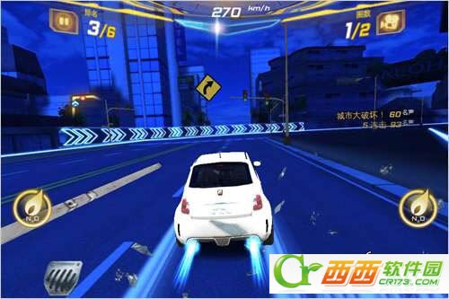 氮气加速、超级氮气加速、加速道具加速都有不同的特效,区分得特别清楚。因为赛道全部在都市中的原因,其实本作的速度感并不如其他几款同类大作来得强烈,但是加速特效却很完美的弥补了这个不足,当玩家使用超级氮气加速,画面顿时切换到另外一种风格,道路和景观全部变得漆黑,只剩下道路引导和氮气喷射发出明亮冷光,未来感和科技感立现。
