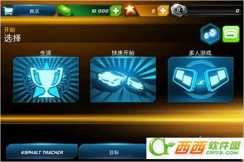 进入以后,有三种模式供玩家选择。生涯模式是可以自己修改车辆,购买车辆的。快速开始,想必不用说了。多人游戏,分为在线游戏,WiFi游戏和蓝牙游戏。这么多种联机方式,使得玩家在和朋友对战的时候显得方便的多。