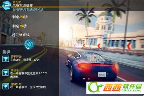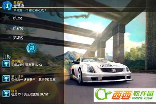 玩家要先过了竞速赛才能开始后面的游戏,在Loading的时候,我们还可以看到任务目标和精美的跑车贴图,可以让玩家小兴奋一下。