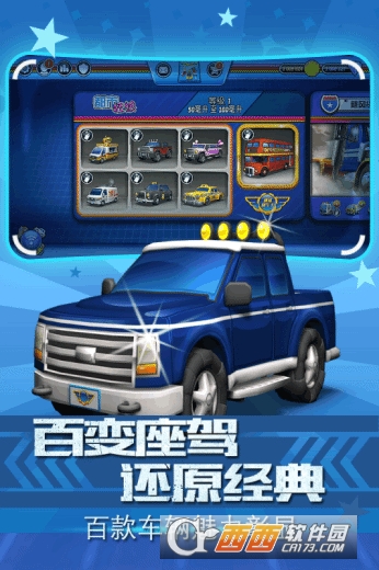 收集相应车辆数量,解锁等级,使用不同等级的车辆游戏,游戏结束后会有不同的金币和分数加成。每高一个等级的车辆,多开启一个新技能和新的赛道。每辆车最多可安装5个技能,通过道具“扳手”升级车辆,升级后的车辆能解锁技能。每种技能具备不同功能属性,选择技能进行装备。装备技能的目的。装备不同属性的技能,增加车辆不同功能属性,增强游戏中的战斗力,从而获得游戏胜利。