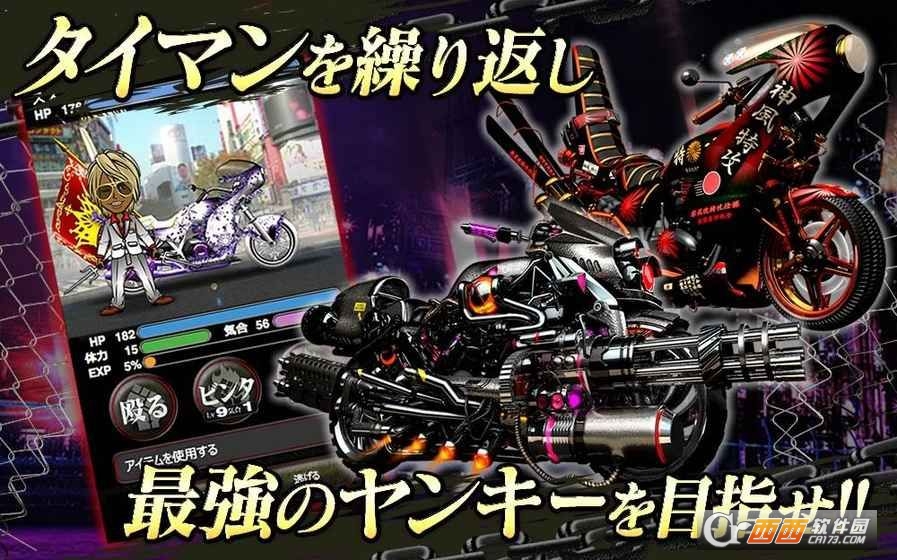 单车之虎是一款以日本暴走单车族为题材的游戏,你可以通过游戏内的所有零件定制属于你自己的暴走单车,也可以和伙伴们进行多人对战,赢得更多的零件,让别人知道谁才是最强的暴走单车族。