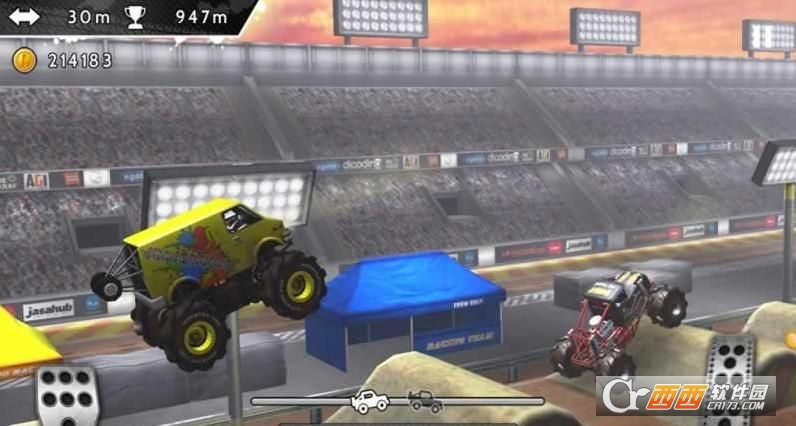 2、在游戏中玩家将驾驶重型越野赛车在复杂的上下坡地形进行超高难度的竞速挑战;