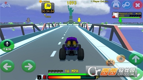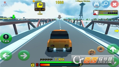 ★这是一款多人连线的3D立体赛车夺旗游戏,每个游戏分区最多可以同时容纳32名玩家参加比赛。